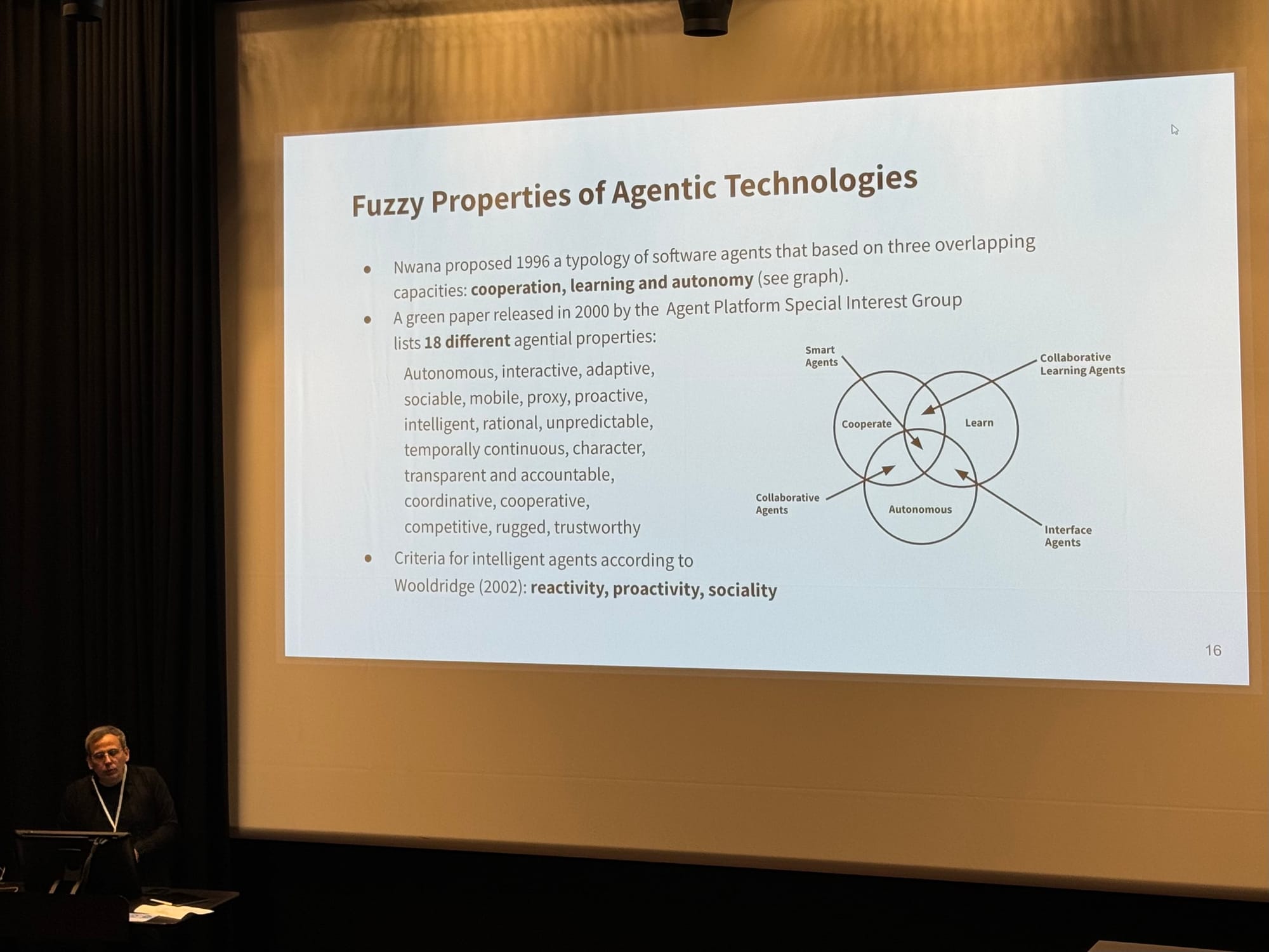 Some literature; An agent is something that acts, makes sense. And is a rational agent if it act to achieve the best outcome (Russel and Norvig, 2022). Criteria on intelligent agents according to Wooldridge (2002): reactivity, proactivity, sociality. Already in 1996 different agent typologies are proposed by Nwana, see this graph.