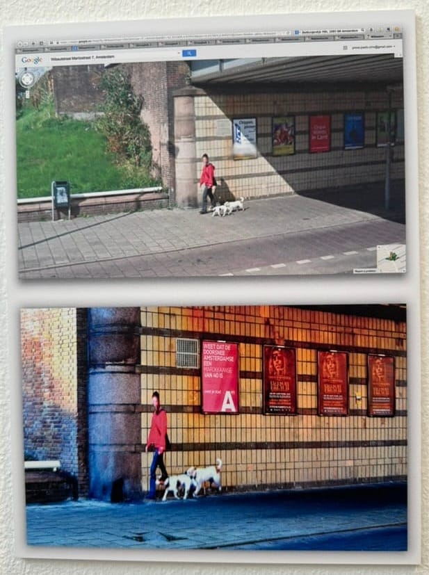 One project (Street Ghosts) from the parallel exhibition on art project by Paolo Cirio was a kind of reversed version of the lovely James Bridle's project Render Ghosts: The artist took the blurred people in Google Streetview pictures and printed these full-size back into reality at that location. See below.